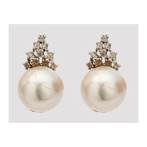 Pendientes en oro bicolor con perla cultivada mabe de 12 mm. coronada por diamantes talla 8/8.