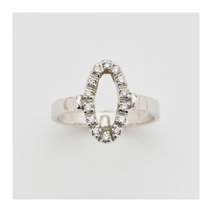 Sortija en oro blanco con óvalo calado de diamantes talla brillante engastados en garras.