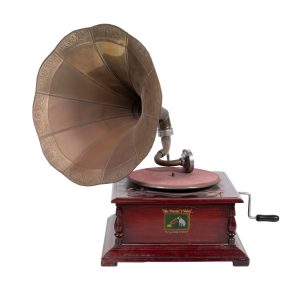 Gramófono «His Master’s Voice» de la Gramophone Company Ltd. en madera barnizada en tono caoba